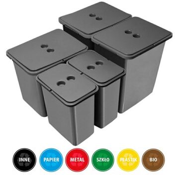 Zestaw koszy MERIL szary Z NAKLEJKAMI 2x20L+16L+2x8L