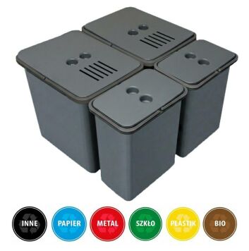 Zestaw koszy MERIL szary Z NAKLEJKAMI I FILTRAMI 2x16L+2x8L