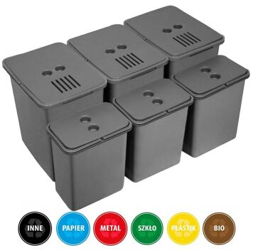 Zestaw koszy MERIL szary Z NAKLEJKAMI I FILTRAMI 3x20L+3x8L